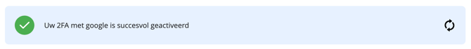 - De statusbalk wordt groen: "2FA met Google is succesvol geactiveerd"