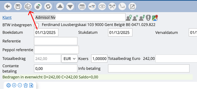 Nadat je een factuur heeft aangemaakt kan je deze via de peppol knop bovenaan versturen.