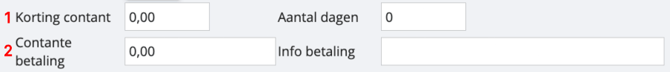 Indien je klanten recht hebben op een korting wanneer ze binnen een bepaald aantal dagen betalen, kun je dit in dit veld instellen. Deze informatie wordt ook op de factuur vermeld. - Contante betaling met extra info: