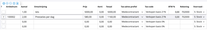 Dit wordt standaard overgenomen uit de klantenfiche, maar je kunt het hier aanpassen, bijvoorbeeld in het geval van een medecontractant. - Tax-code