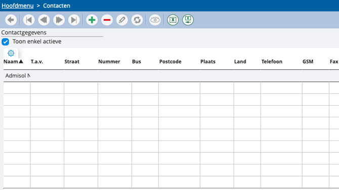 - Via Basisbestanden > contacten