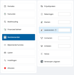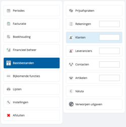 - Via Basisbestanden > Klanten of Basisbestanden > Leveranciers
