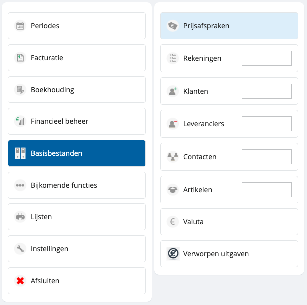 Vanuit het hoofdmenu kan je op deze manieren naar het overzicht met prijsafspraken gaan: