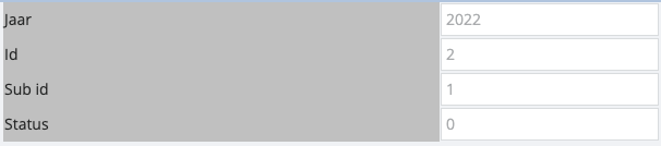 Let op: Het jaarveld wordt uitgeschakeld en kan niet aangepast worden. Het jaar komt uit de boekperiode, niet uit het vorige kalenderjaar.