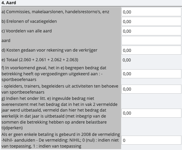 c) Voordelen van alle aard • aard: Beschrijving aard van inkomsten
