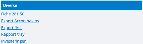 In de sectie 'Diverse' vind je de optie 'Fiche 281.50'. Klik hierop om het overzichtsscherm te openen.