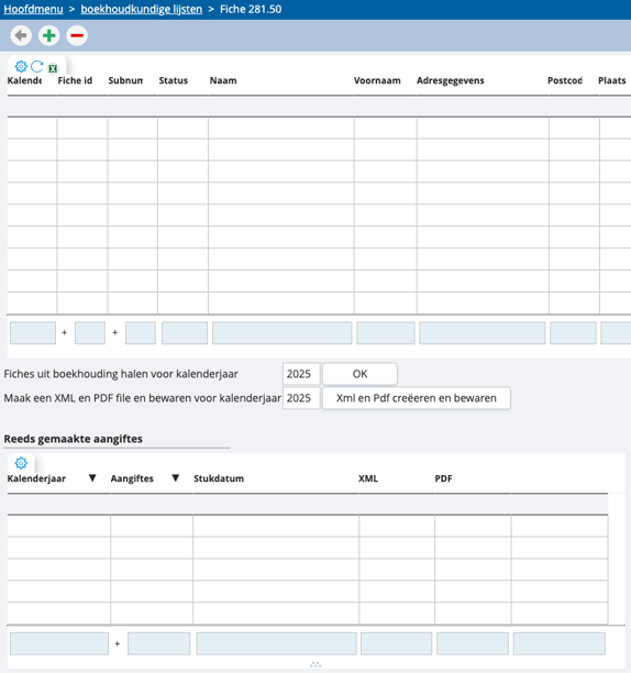 Het fiche 281.50 overzichtsscherm
