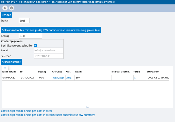- Omzet in het geselecteerde jaar > ingesteld bedrag (bv. €250)