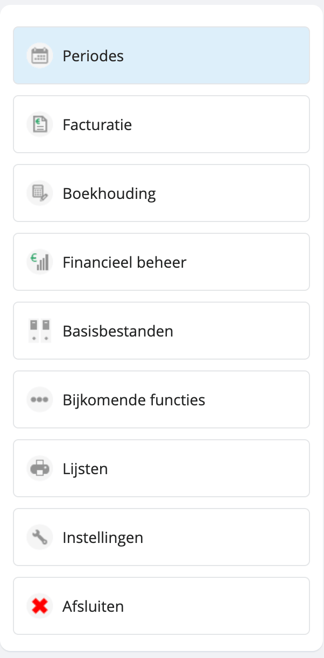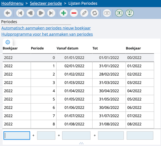 Je krijgt hier een overzicht van alle aangemaakte periodes binnen dat boekjaar.