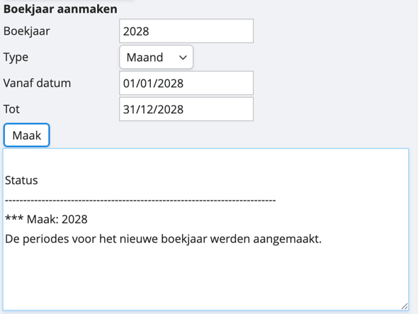 Na bevestiging worden de periodes voor het komende boekjaar automatisch aangemaakt.