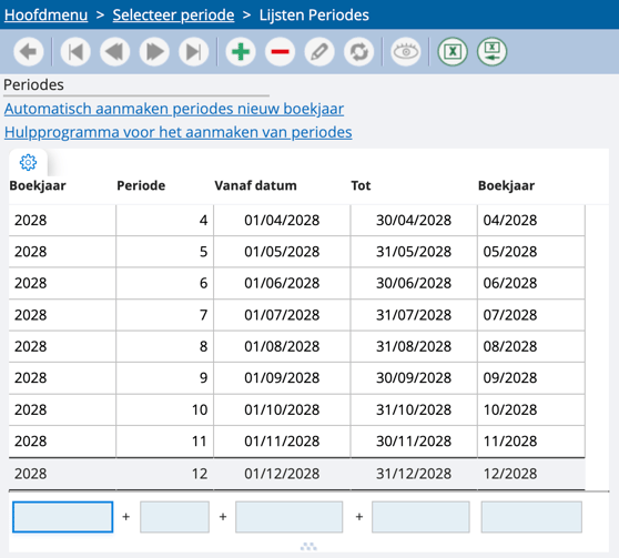 Automatisch aanmaken van periodes voor een nieuw boekjaar