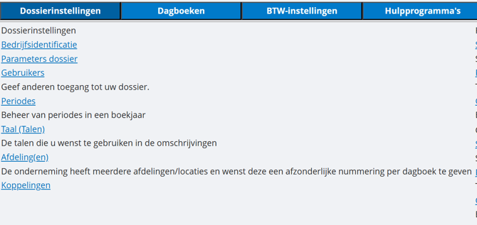 - Open vervolgens Dossierinstellingen