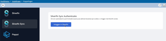 Zo kom je terecht op het koppelingen scherm. Hier zal je de Silverfin en Silverfin Sync koppeling zien staan.