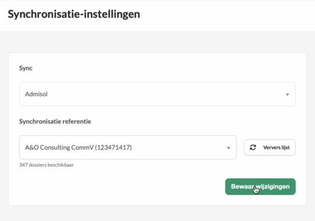 - Bij 'Synchronisatie referentie' kies je het juiste dossier dat je wil synchroniseren.