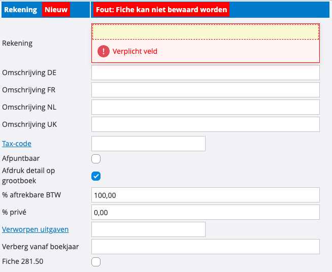 Aanvinken als deze rekening gekoppeld is aan fiscale fiches voor de Belgische belastingaangifte vennootschappen. Zorgt voor automatisch invullen van fiscale formulieren.