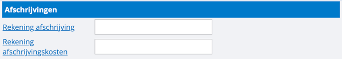 Link naar de afschrijvingsrekening voor deze rekening. Voor vaste activa die afgeschreven moeten worden (gebouwen, machines, voertuigen).