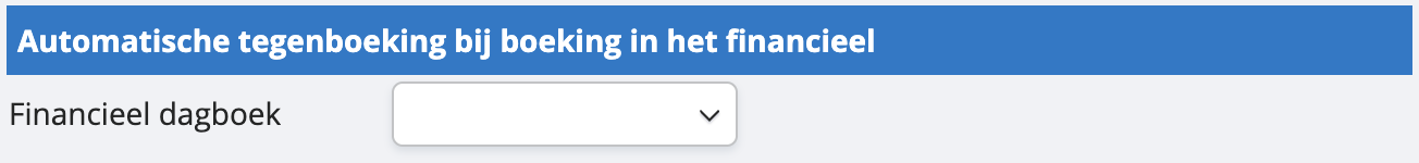 Selecteert welk financieel journaal automatisch een tegenboeking maakt (Bank, Kas, Kredietkaart).