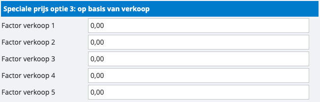 Factor die vermenigvuldigd wordt met de standaard verkoopprijs incl. BTW van het artikel. - Factor verkoop 3