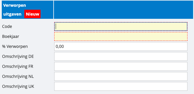 Het boekjaar waarvoor deze verworpen uitgave geldig is. U kunt verschillende percentages instellen voor verschillende boekjaren. - % Verworpen